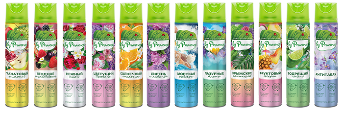 При изготовлении освежителей используется уникальная технология Ecofrech. Формула, разработанная французскими парфюмерами, состоит из натуральных ингредиентов, она не агрессивна к окружающей среде, не вредит экологии и организму человека. В основе освежающих спреев – концентрированные растворы эфирных масел. В составах не содержатся вредные химические добавки, такие как фосфаты и органические растворители. Благодаря антибактериальной системе Ecofrech, эти ароматизаторы эффективно устраняют неприятные запахи, одновременно увлажняя воздух и наполняя помещение приятными и стойкими природными ароматами. Бренд предлагает большой выбор ароматов на любой вкус – от бодрящего лайма и цветущей вишни до морской ривьеры и лазурных Альп.