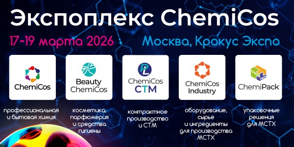 Приглашаем производителей и дистрибьюторов принять участие со стендом в международном экспоплексе ChemiCos-2026 – выставочной площадке, демонстрирующей организацию полного цикла производства бытовой и профессиональной химии, косметики, персональной гигиены, парфюмерии, БАДов и товаров для красоты - от оборудования, сырья и упаковочных решений до развития каналов дистрибуции готовой продукции и СТМ.